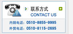 內(nèi)銷電話:0510-88559995 88559996 聯(lián)系人:華經(jīng)理 外貿(mào)電話:0510 8115 2695 聯(lián)系人:楊小姐 郵編:214112
